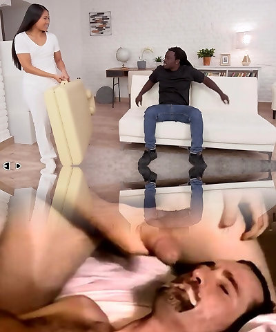Young whore masseuse mesmerized by her client's hefty black trunk