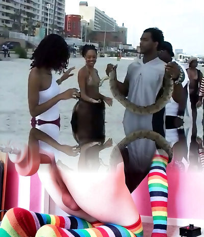 Amazing dirty ebony girl at the outdoor party with a lot of men
