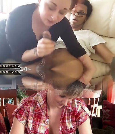 Ebony guy with an enormous cock like swapping between two pallid vaginas
