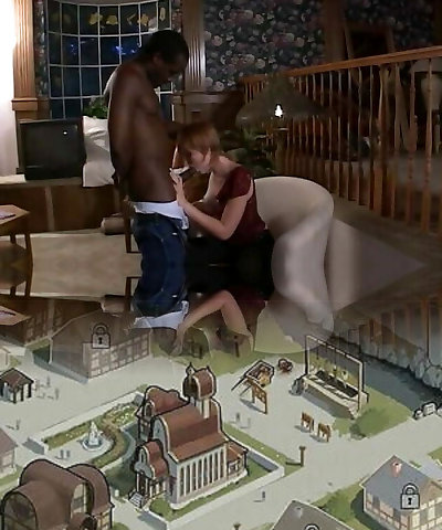 Young redhead sucks long penis of black fellow and rides on dick...