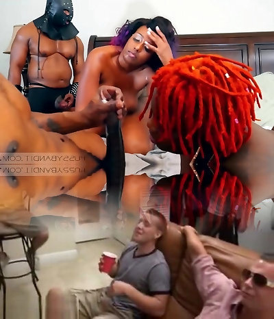 Chubby ebony red-haired slut with giant backside gets eaten before sucking BBC