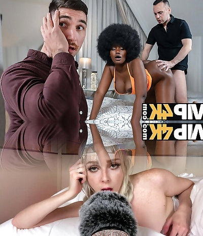 During an interracial swingers party a dark-hued guy turns out a white chick