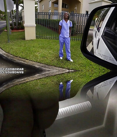 Interracial poking in the van with lovely ebony nurse Lexxi Deep