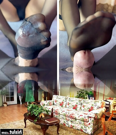 Little nurse's ebony tights foot sex, ejaculating in her pantyhose