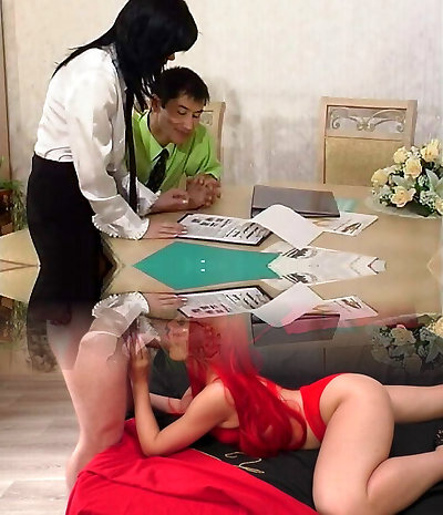 Mischievous boss slides his large dick in ass of Bibi Noel during a 3-way