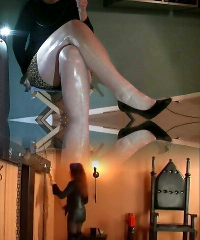 kelly feet mistress dominates in dark-hued nylon socks and foot fetish