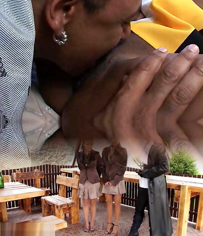 Amazing dirty ebony girl at the outdoor party with a lot of men