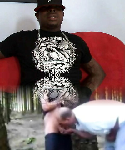 Bald bastard is licking her black beaver