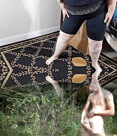 Slutty ash-blonde enjoys a big black trunk as her cuckold strokes