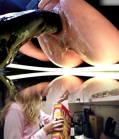 Black asshole filled with oil and his fat black cock