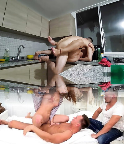 Interracial FFM 3 way in the kitchen with Bianka and Pauline