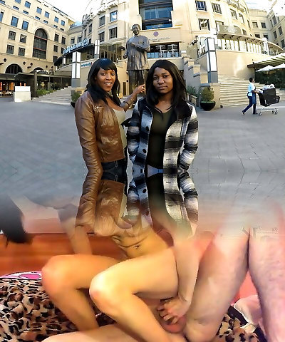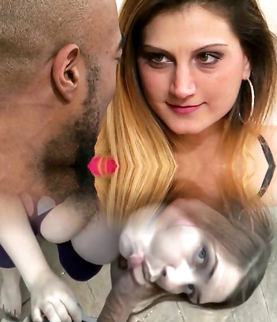 Amorous trio with Skyy Ebony a fuckslut with huge breasts and brunette loves to be satisfied in the pussy by two black cocks