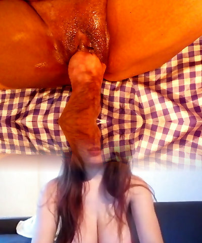 French riding an enormous black dildo and going knuckle deep fucking POV