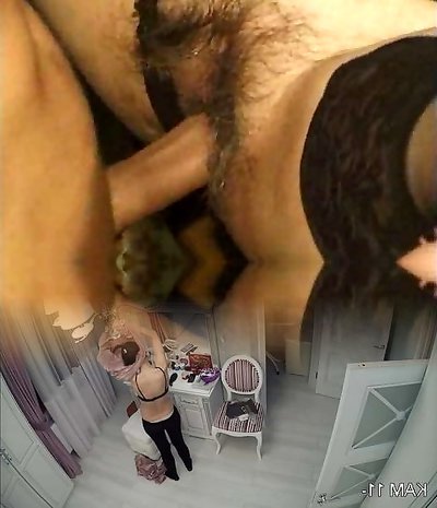 Aged sexy Lukerya. Long pantaloons with lace cut into the poon. Bottom glance. Hairy pussy and big round ass.
