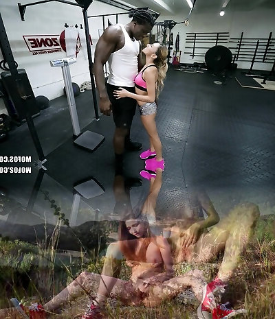 Horny blond babe Layla Jade gets penetrated by three black studs