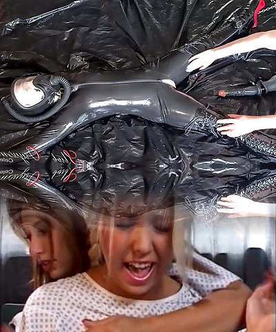 Gimp Slut-Orgasma Celeste black latex and the sex machine