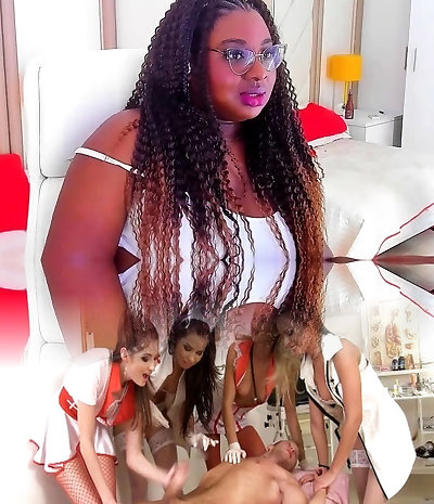 Ebony sex bomb MILF shares cock with Japanese stepdaughter Clara Trinity