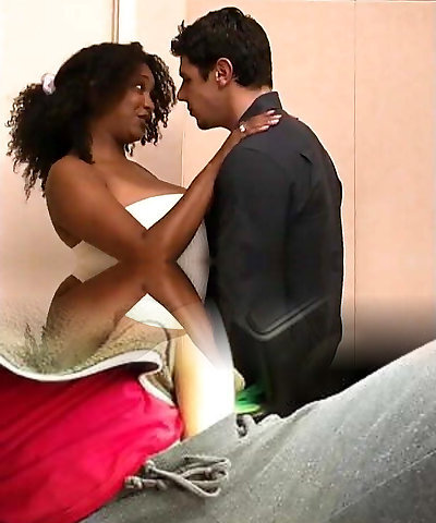 Busty German dark-hued pleasuring a white cock with her moist pussy
