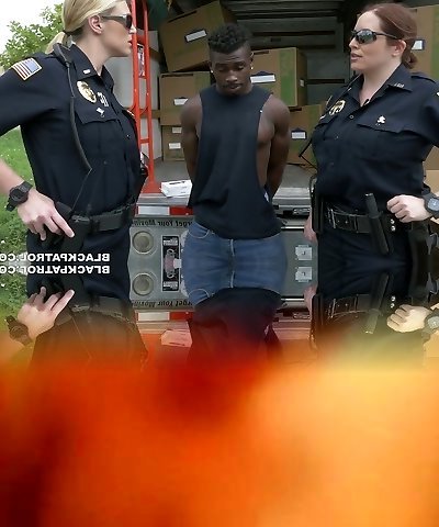 Caucasian police nymphs fucks black scofflaw in threesome
