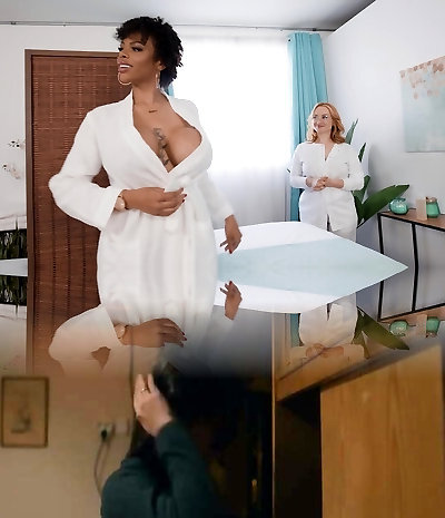 Lesbian maid licks white girls and offers three-way with her husband