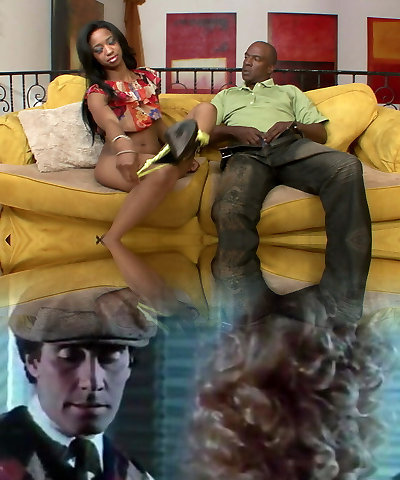 Petite Ebony cheerleader babe was gangbanged on a sofa with deep coochie and mouth foray