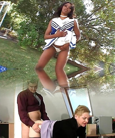 cheerleader jump on dark-hued cock