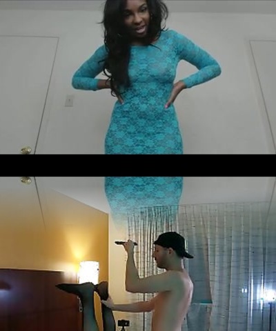 Sexy long legged black Tiffany Tailor lets Bill Bailey spunk onto her feet