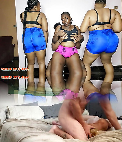 Three juicy African babes rocking and banging same dick.